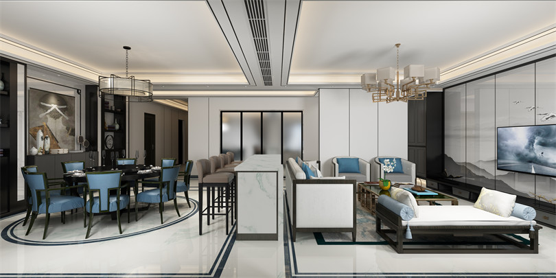 惠州201-300平米新中式風格景安花園室內設計效果圖