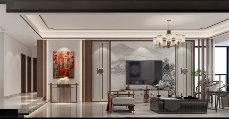 廣州珠江御景灣四居新中式風格裝修效果圖