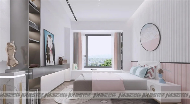 舒適圈的生活不能待太久,要走出來。設計更加如此,適當的沖突有其存在意義。不破不立是沖突更是再平衡,這也是設計存在的意義。平衡之術運用在每一個場景里,如同客廳里那一塊藝術背景墻,與茶幾上的盆栽遙遙相望,平衡左右。切割撕裂后又將其揉合平衡是趣味所在。
