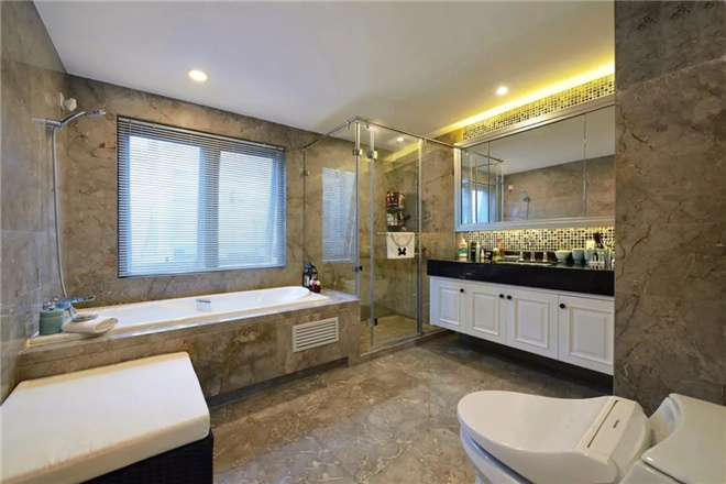 衛生間是屬于復古風的,古樸的地磚、墻磚,展現樸實優雅的外觀,打造出溫暖的居室氛圍。