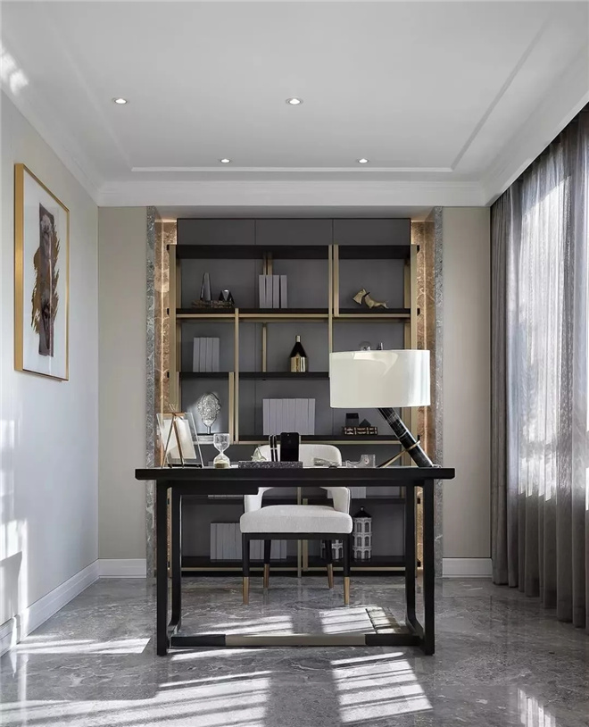 從客廳到書房,幾步之遙,卻給予主人一個閱讀、工作與獨處的靜雅空間。倚窗而立,在光影交匯的書房中,從技藝精良的昆蟲飾品上,窺見主人的高雅品位,窺見沙漏流金的時光里主人對生活的享受。