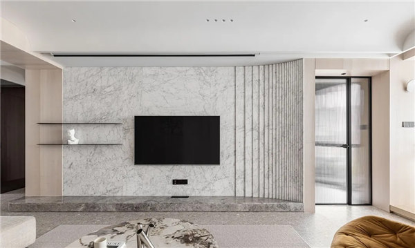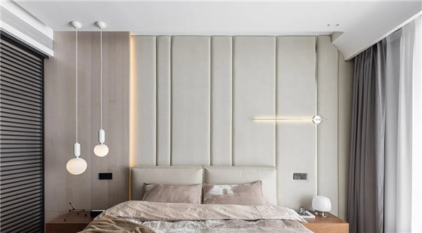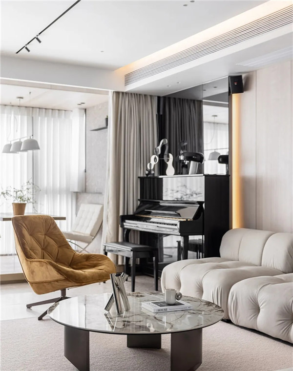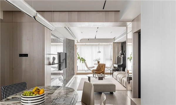 全屋采用無主燈和局部線性燈光設(shè)計,營造放松、溫馨氛圍,整體以白色、淺色的木飾面為主,搭配小面積的鏡面穿插,融合自然紋理的石材點綴,通過對材質(zhì)、細節(jié)的整合把控,進一步達到對空間本身的塑造以讓心靈找到歸屬