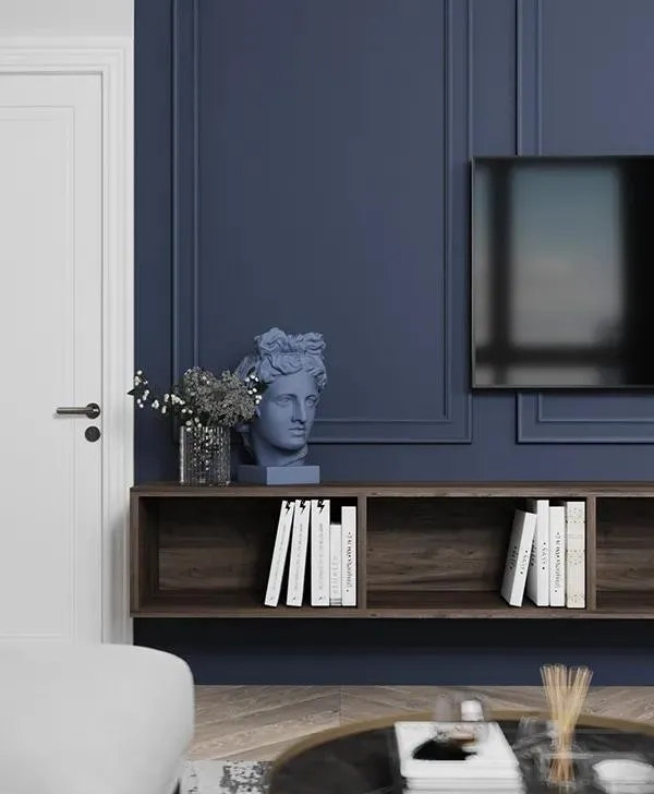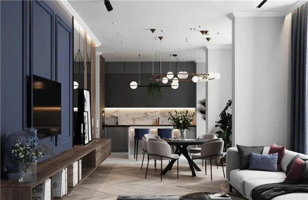 白色背景墻與電視墻藍(lán)色調(diào)相結(jié)合,形成一種清新明亮的視覺(jué)效果,搭配一些原木色家具,營(yíng)造出一個(gè)簡(jiǎn)約而有型的輕文藝之家。