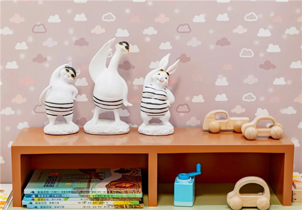 兒童房給人以溫柔寧靜的舒適感,動物元素擺件飾物給空間增添靈動。