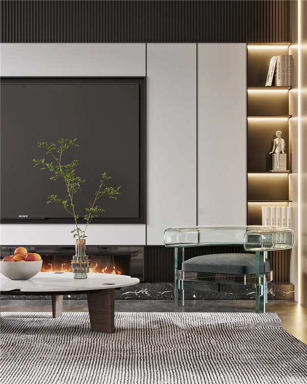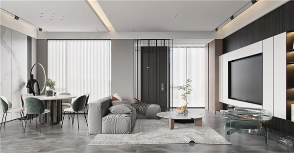 客廳地面采用灰色大理石,佐以白色大理石墻面,簡(jiǎn)潔并具有個(gè)性的視覺空間。灰色彩布滿整個(gè)空間,在裝飾中加以流行元素,點(diǎn)綴著綠植,整個(gè)客廳空間彌漫著濃濃的雅奢氣質(zhì)。