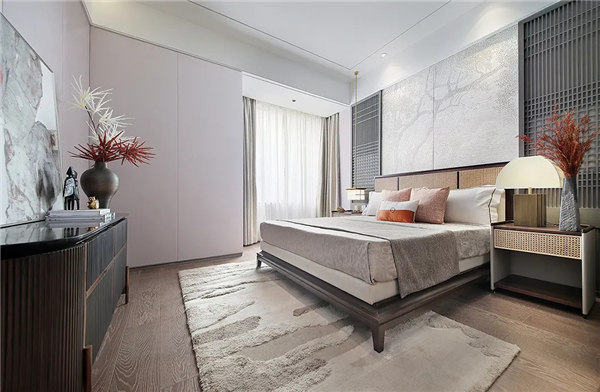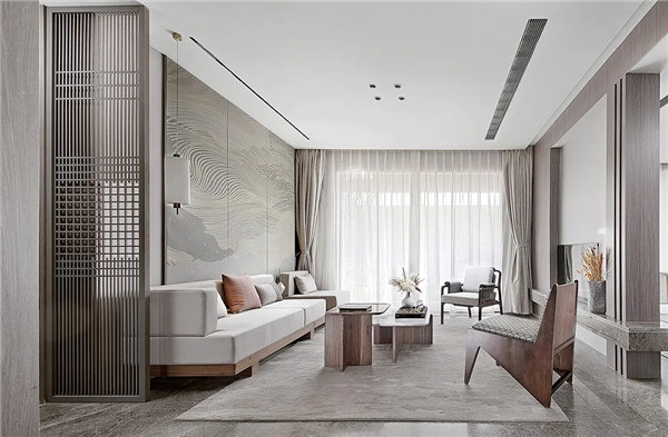 現代元素與古典元素相結合的方式,立足于傳統,又施之以創新,呈現出了極為濃郁的東方情調。傳統與現代交融,古樸與時尚融匯,新中式是人們在喧囂中追求閑云野鶴的捷徑,在自己的一方天地中,感悟時間的悄然流逝,平和淡然。