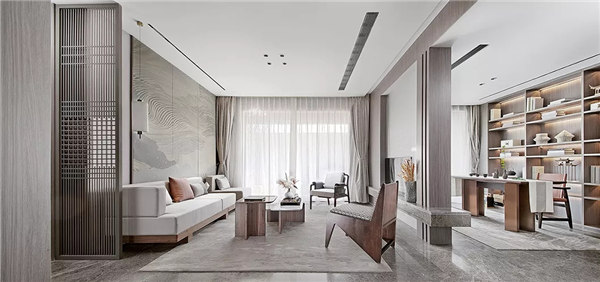 “輕奢化”的新中式風格,突破了傳統中式可能過于厚重的詬病,陳設不過于浮夸,色彩素雅和諧,婉約別致,突出優雅而低調的東方式奢華