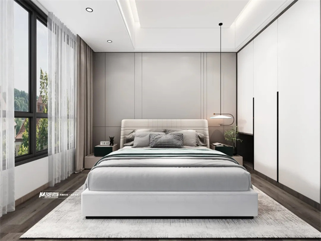 當(dāng)清晨醒來,窗外還有幾縷陽光透過紗窗照射進(jìn)來,如此春意的設(shè)計(jì)手法把空間與自然,刻畫得栩栩如生