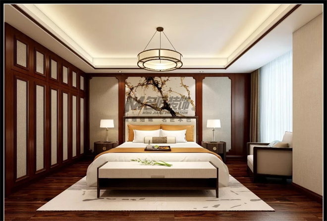首先在功能方面,要充分滿足業(yè)主的生活要求。客廳中間墻采用高級壁紙飾面與墻板結(jié)合。