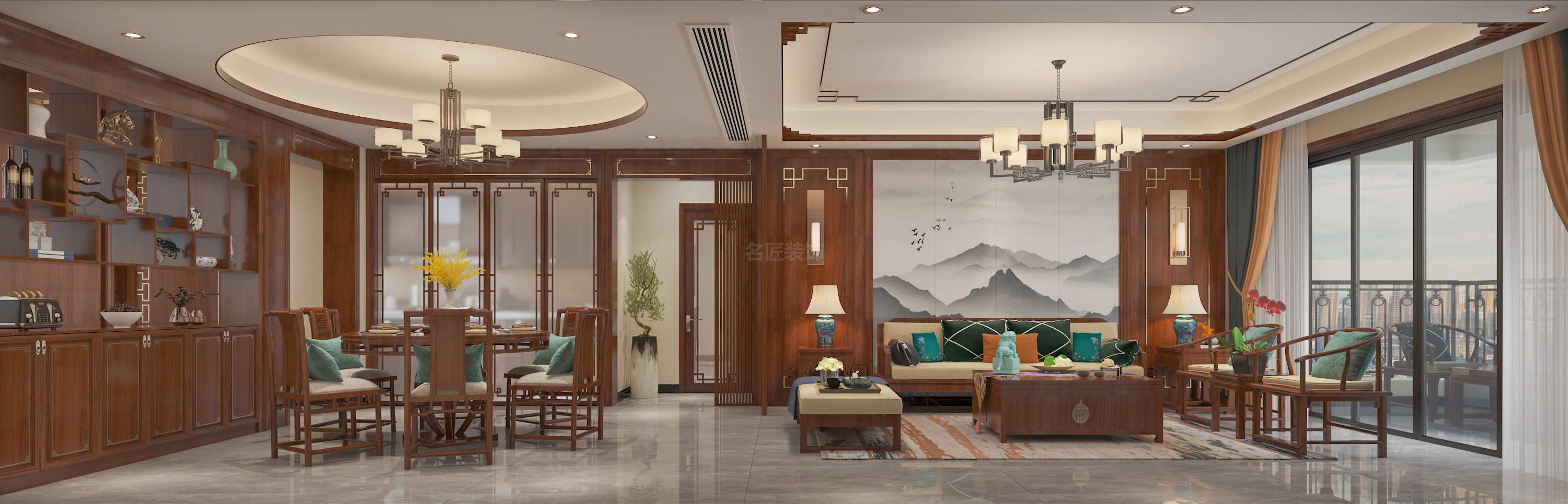 貴港盛世天禧三居新中式風格裝修效果圖