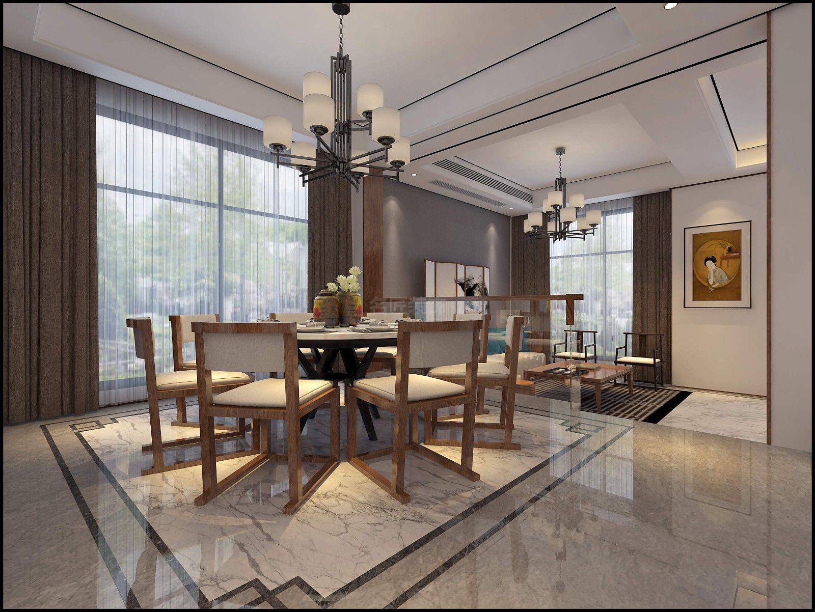 江門201-300平米新中式風格白云尚城室內設計效果圖