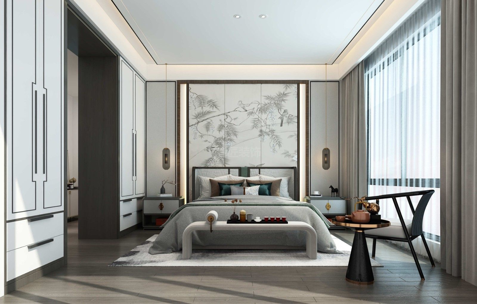 ??陂L怡花園別墅新中式風格裝修效果圖