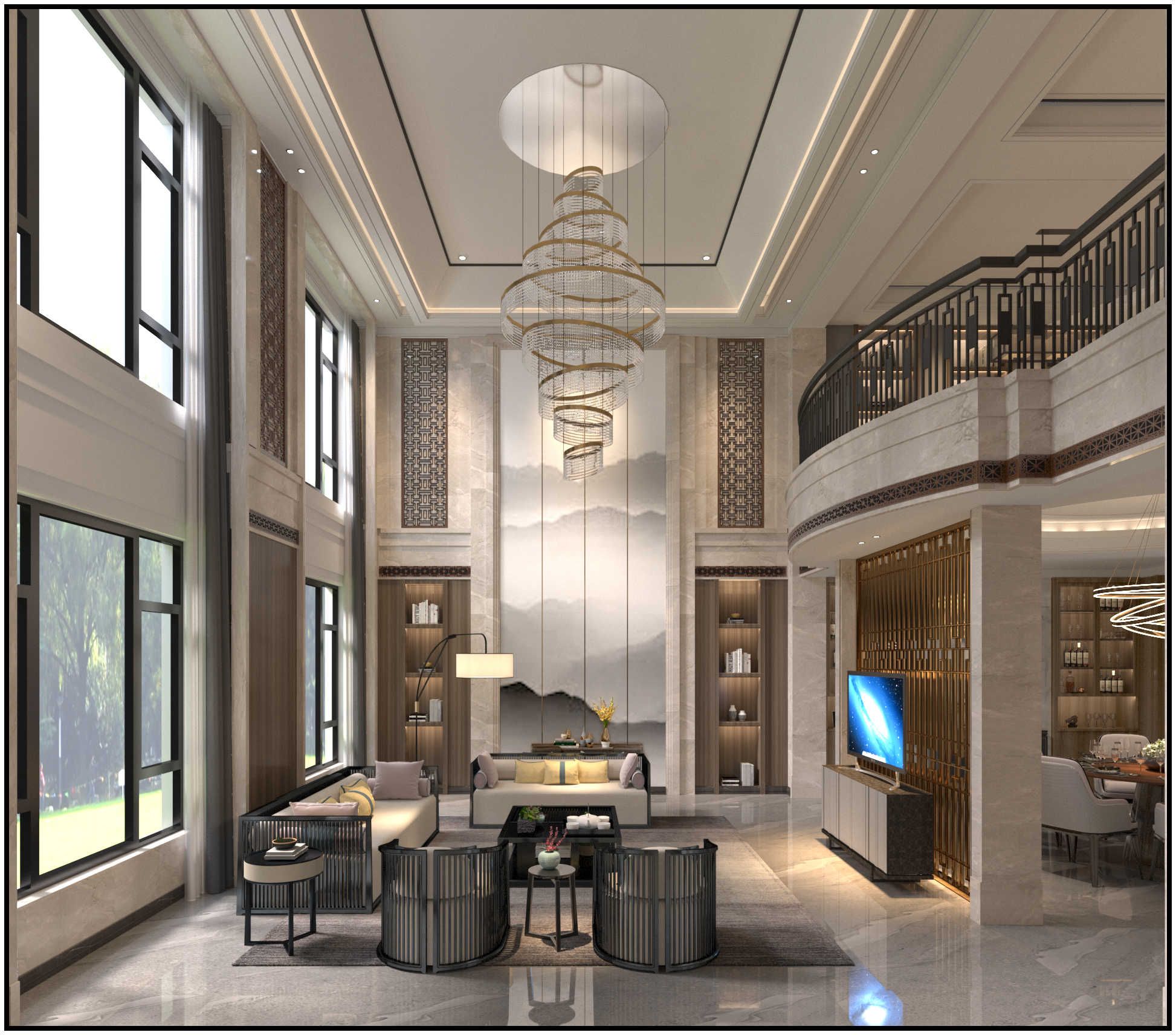 淮安開發(fā)區(qū)自建別墅別墅新中式風(fēng)格裝修效果圖