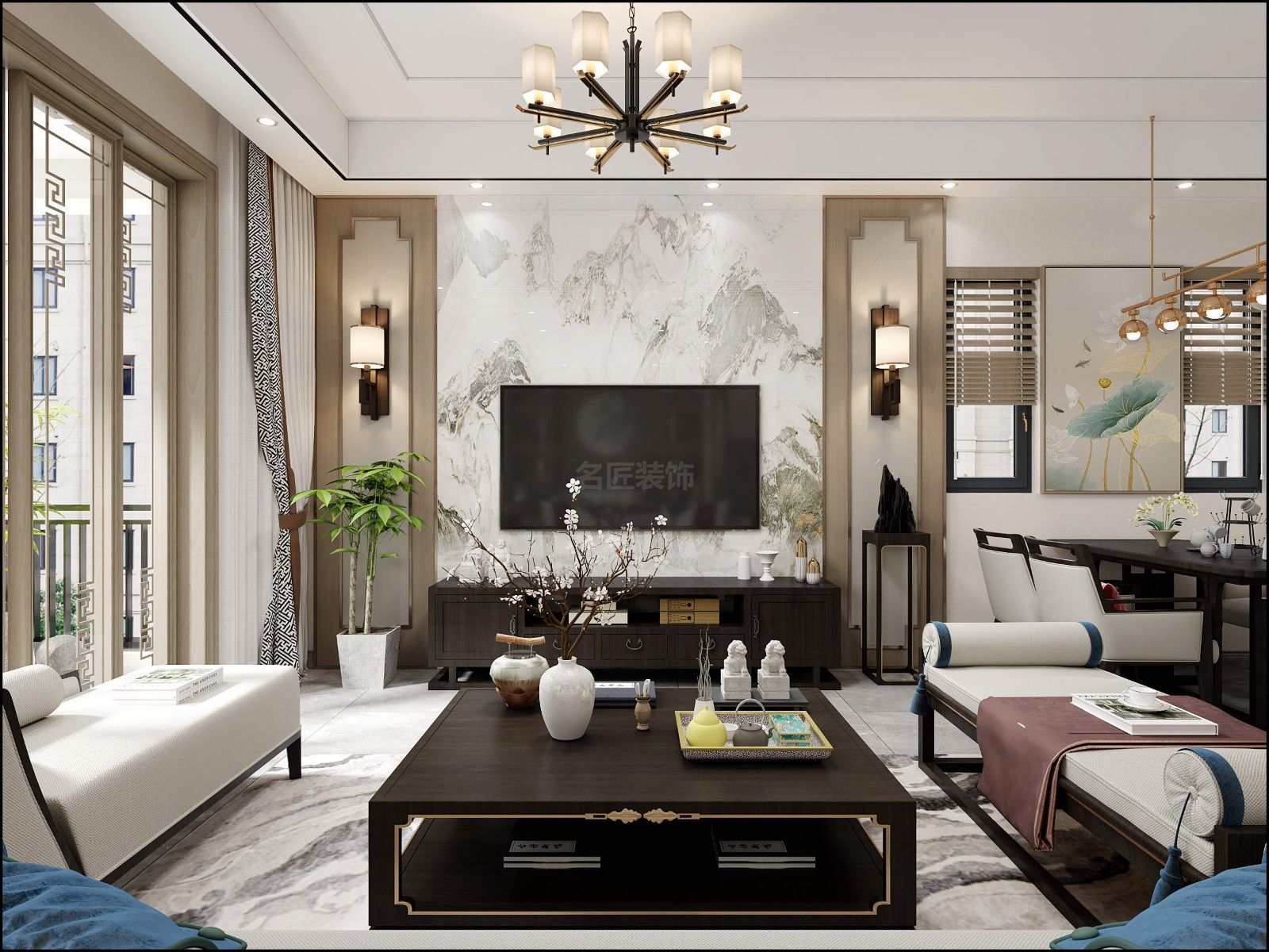 惠州201-300平米新中式風格景安花園裝修設計效果圖