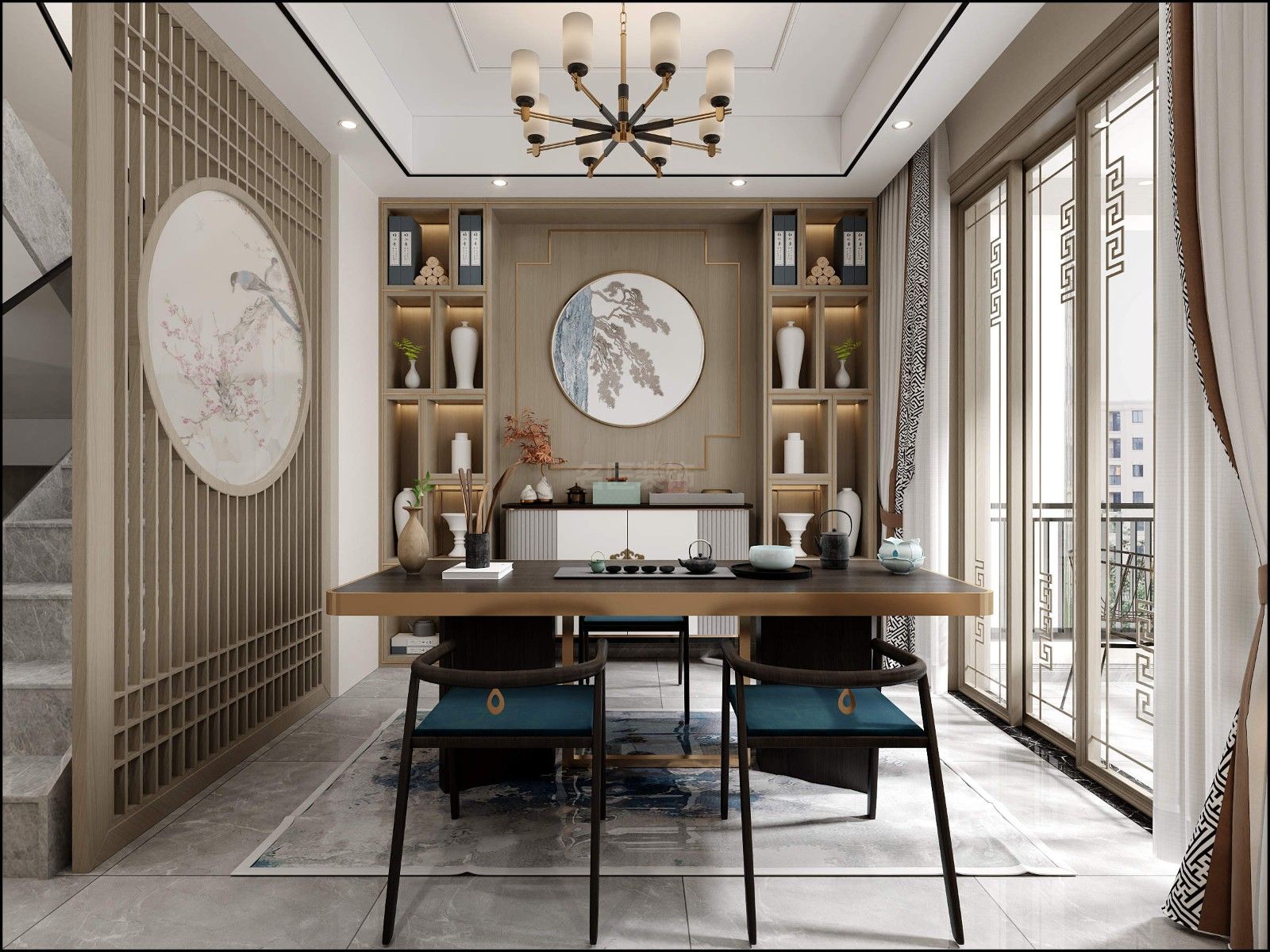佛山金科博翠天下疊墅別墅新中式風格裝修效果圖