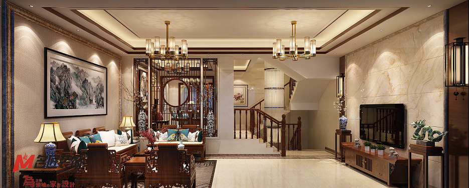 中山101-200平米新中式風格國韻飄香家裝設計效果圖