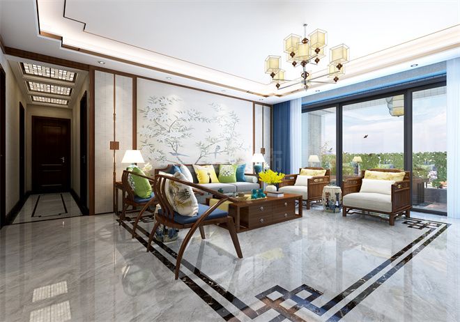 中山豪逸御華庭四居新中式風(fēng)格裝修效果圖