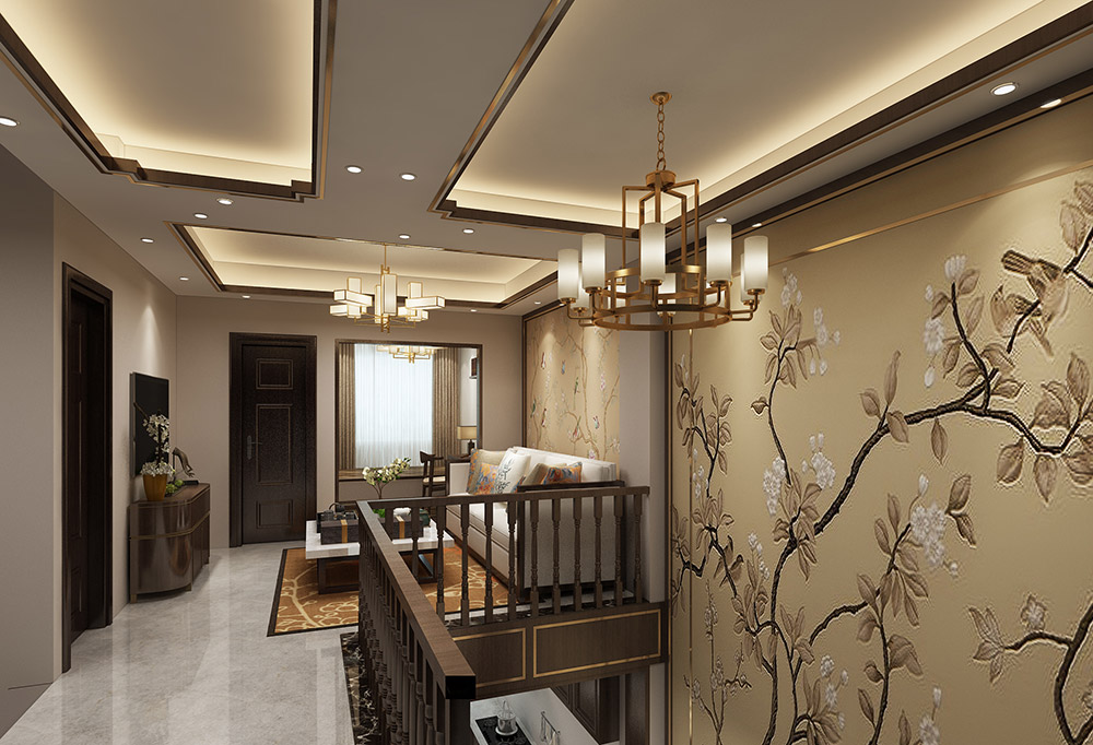 普洱瀟湘新區復式新中式風格裝修效果圖