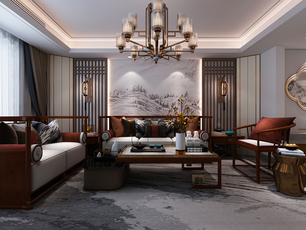 惠州201-300平米新中式風格景安花園家裝設計效果圖