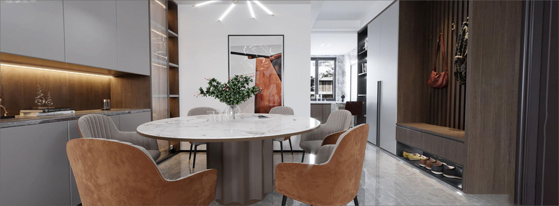 居所不僅是安身之所,也是靈魂的舒展之地。現代簡約是一種“大宅至簡”生活的態度,采用最直白的裝飾語將空間布局和使用功能完美結合,重視材料的質感及功能,推崇科學合理的構造工藝,結合業主的愛好及生活習慣,為空間賦予更多的精神內涵。當喧囂與繁華褪去,給予懂生活的人一處舒適寧靜的棲居之所。