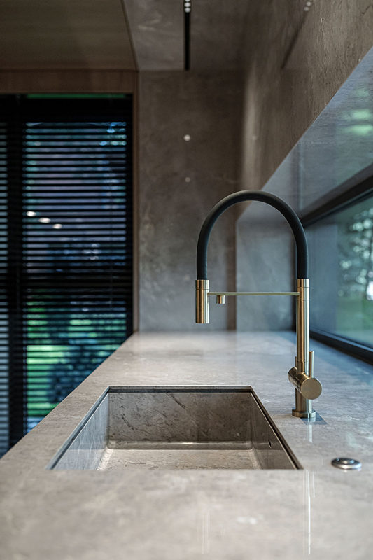 石材和金屬自帶誘人的光澤,在點點燈光的映襯下,扎實中透露出靈動,提升了整個家的氣質與品位。