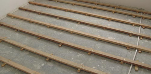 7.5、地板:地垅必須現(xiàn)沖,間距為中對(duì)中24.4厘米(無(wú)夾板墊底的除外),實(shí)用地板鋪設(shè)的,必須用地板釘在松木龍骨上固定。