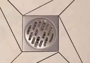 6、地漏四周用6厘米的瓷磚條斜拼,促使淋浴區用水時排水更快,地面無積水;
